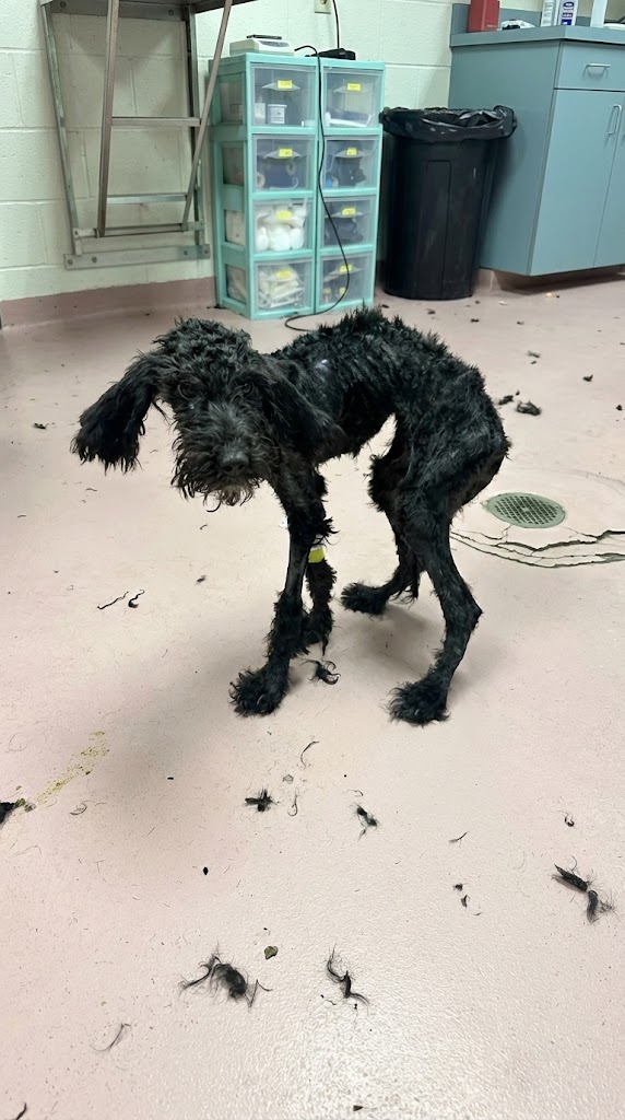 Guppy should have weighed around 25 pounds—a healthy, lively little dog. Instead, when she arrived at the shelter, the scale barely reached 7 pounds. After the medical team shaved off her filthy, urine-matted fur to treat her skin, the truth became even more horrifying.