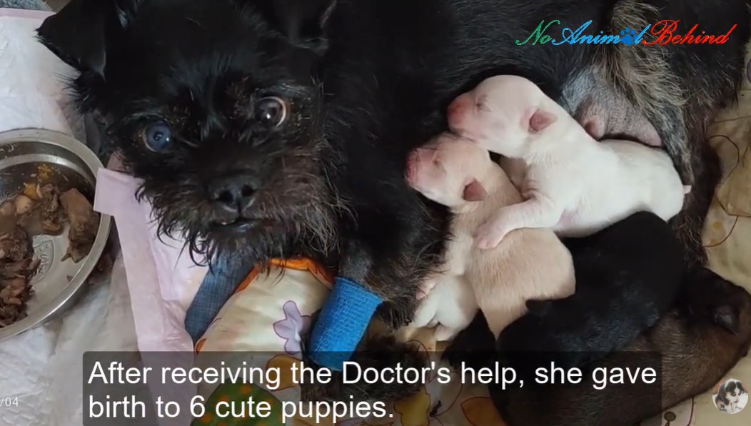 With the support of a dedicated veterinary team, Mia gave birth to six beautiful, healthy puppies.