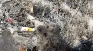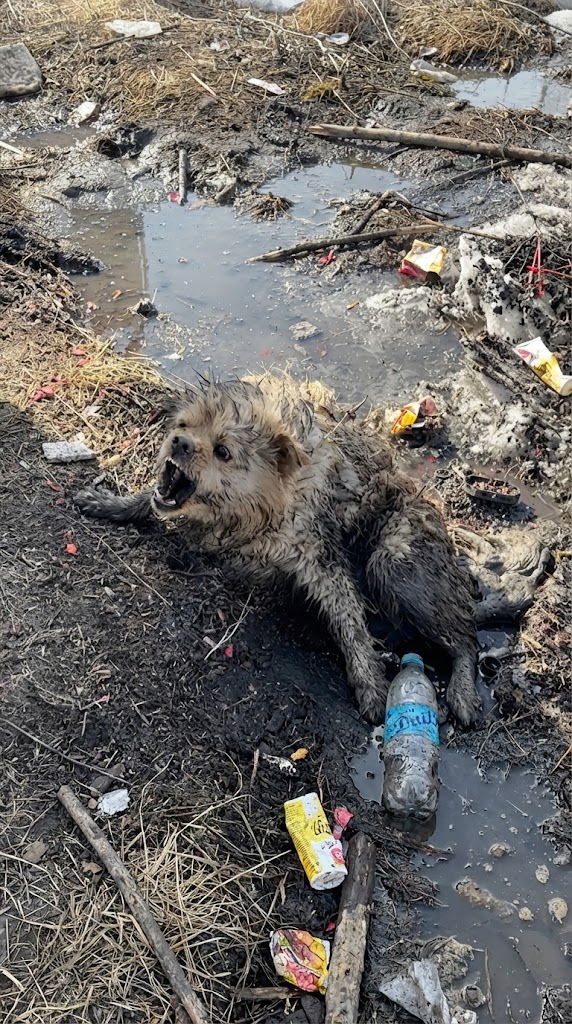 Each time a hand reached toward her, she snarled, snapping in blind panic, retreating deeper into the puddle as if it were the last place left where no one could hurt her. To her, people were not helpers — they were reminders of pain she had never escaped.
