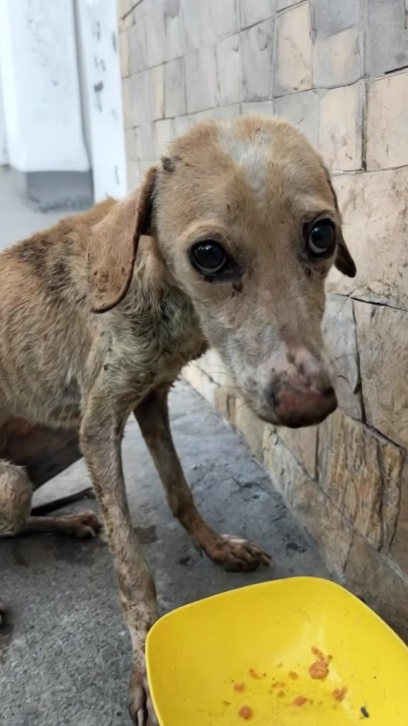Nearly a week later, something shifted. Milagro lifted her head—just enough to be noticed. Later, she accepted a few soft bites of food. Her tail moved, barely, but unmistakably.