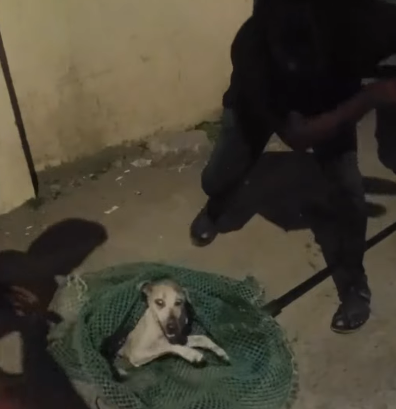 After a call came in, rescuers from the Animal Warriors Conservation Society rushed to the scene. But the situation was tricky: the dog was trapped in a narrow brick gap, terrified, and moving unpredictably.