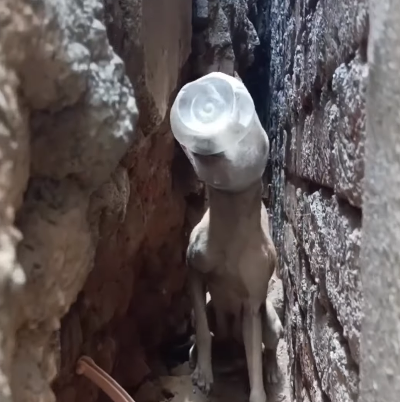 Stuck in that narrow space, he fights to pull away, but the container won’t budge. And with every passing minute, the danger grows. Animals caught like this don’t just suffer — they can die slowly, from dehydration, starvation, and exhaustion.