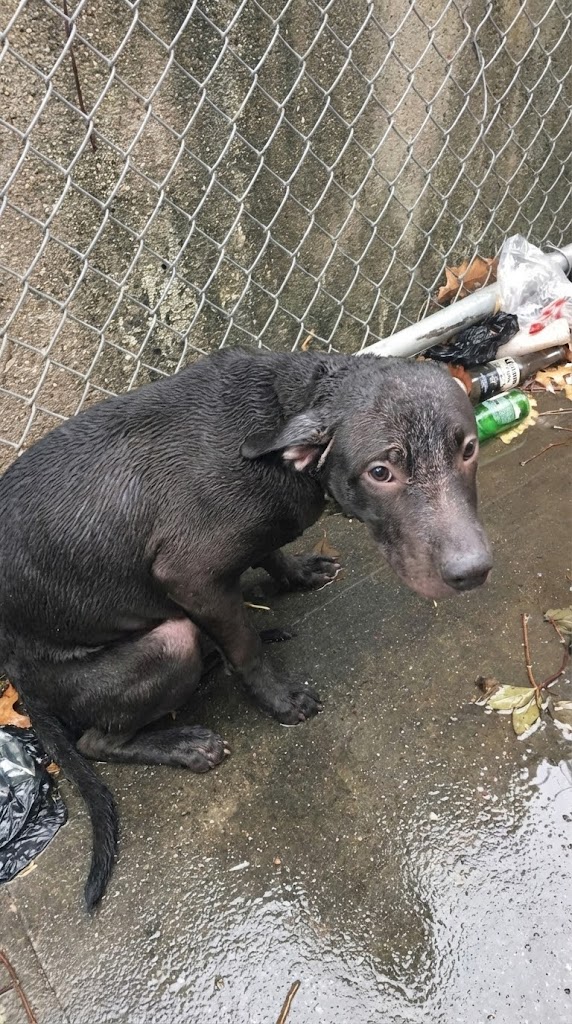 He just sat still, soaked to the bone, as puddles formed around his fragile paws. His fur clung to his body, heavy with water, and his eyes stared into the gray distance. Around him, trash floated by—empty bottles, scraps of paper, reminders of a world that had already moved on without him.