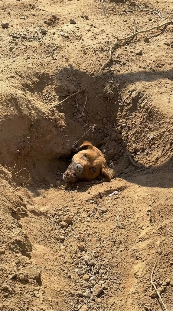 A mother dog lay trapped beneath the dirt, her body half-submerged, her breaths shallow and uneven. Mud coated her fur. Her legs trembled. Somehow—against all odds—she was still alive.