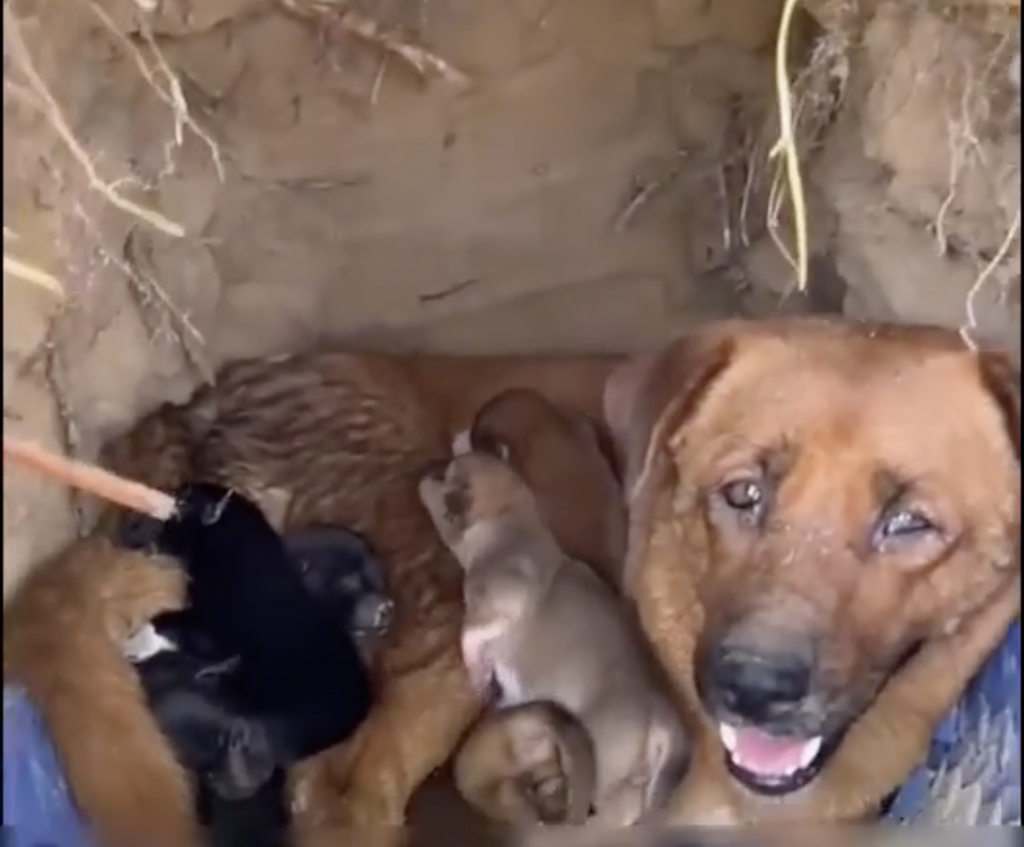 VIDEO: Buried alive under packed soil, a mother dog cries out while her 7 puppies wait nearby