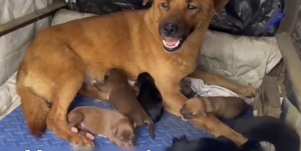 Today, Eagle walks proudly beside those who love her. Her puppies are strong, playful, and full of energy. Sometimes she still wanders past the place where it all began—but the fear is gone now.