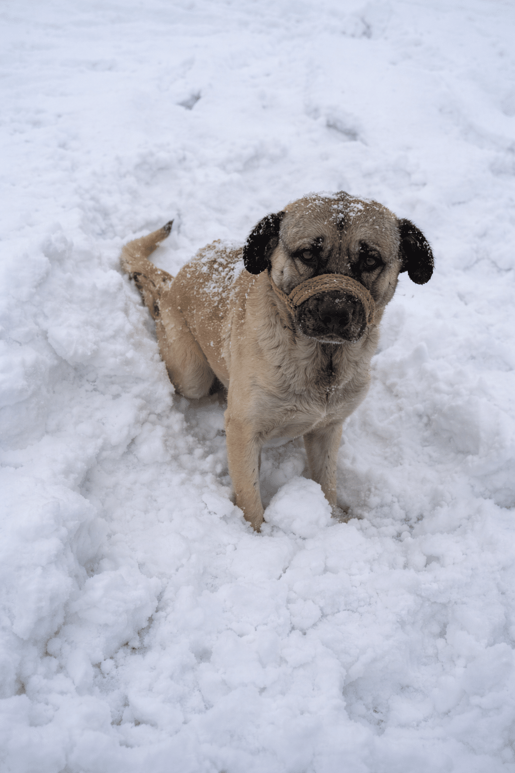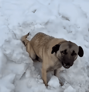Just a dog, stuck in snow.
