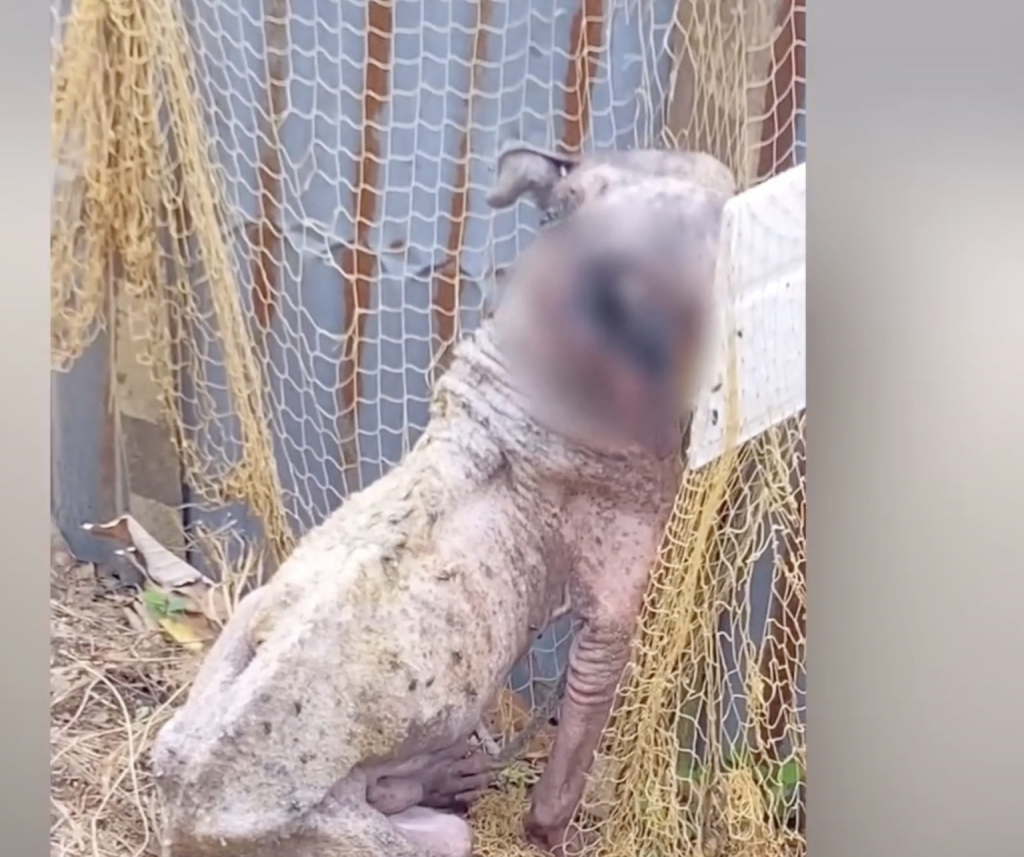 The man knelt and spoke softly. The dog’s tail gave a slow, hesitant sway, as if unsure whether kindness was real anymore. Seeing the rope secured tightly to a post, the man acted without pause. He untied it, wrapped the dog in a clean cloth, and carried him away from the empty lot.