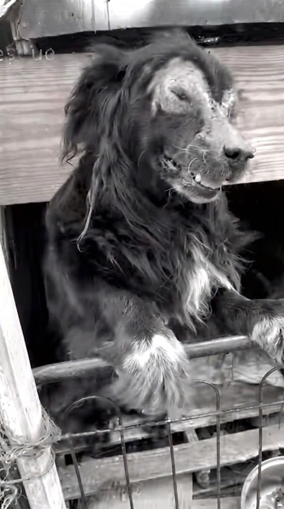 His face was swollen beyond recognition, ravaged by open wounds and severe infection. His eyes were sealed shut, lost beneath layers of pain and neglect. Each breath looked like effort—like a body fighting to stay present.