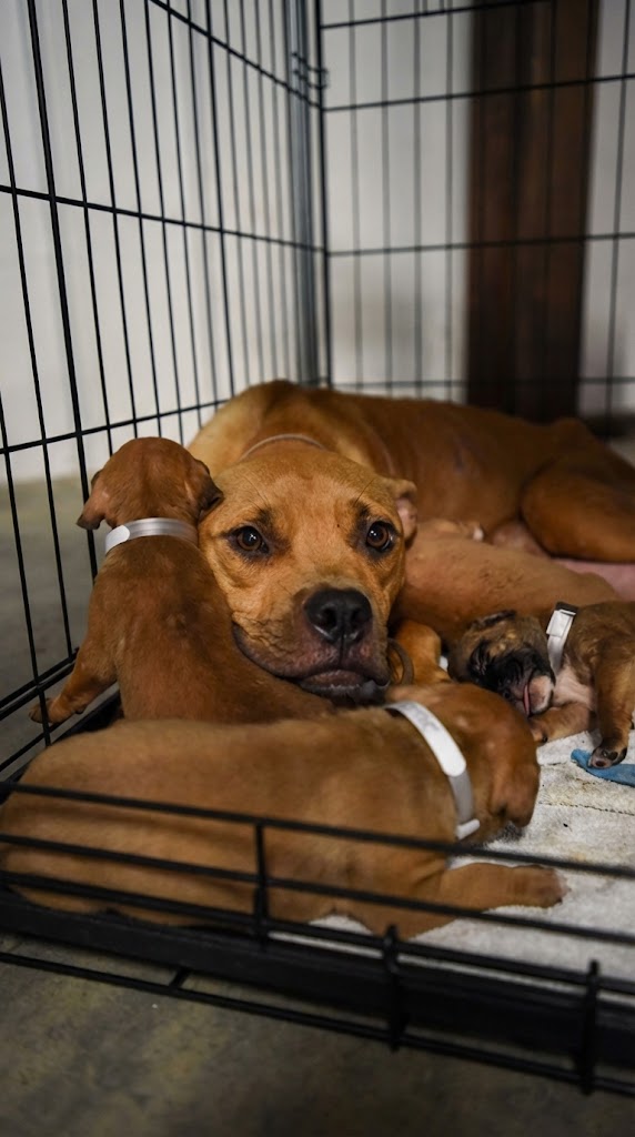 When the rain refused to stop and the streets began to disappear under murky water, Abilene had nowhere to go. There was no porch to hide under, no human arms waiting to lift her out of danger. Her body was already frail from illness and neglect, and beside her were the only things that mattered—her helpless newborn puppies.