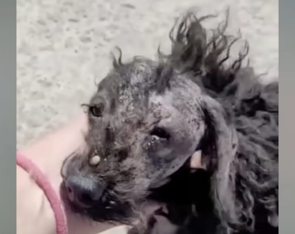 His curly fur had turned into hard, painful mats that pulled at his skin with every step. Beneath that tangled coat, his body was frighteningly thin. His ribs stood out sharply. Ticks clung stubbornly to irritated patches of skin, feeding on a body that had almost nothing left to give.